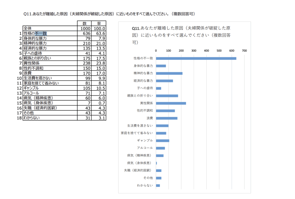 法務省の調査によれば、離婚の理由で最も多いのは「性格の不一致」です。