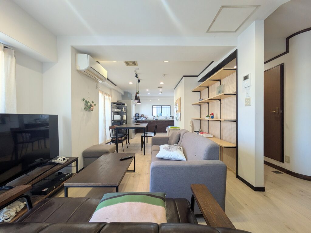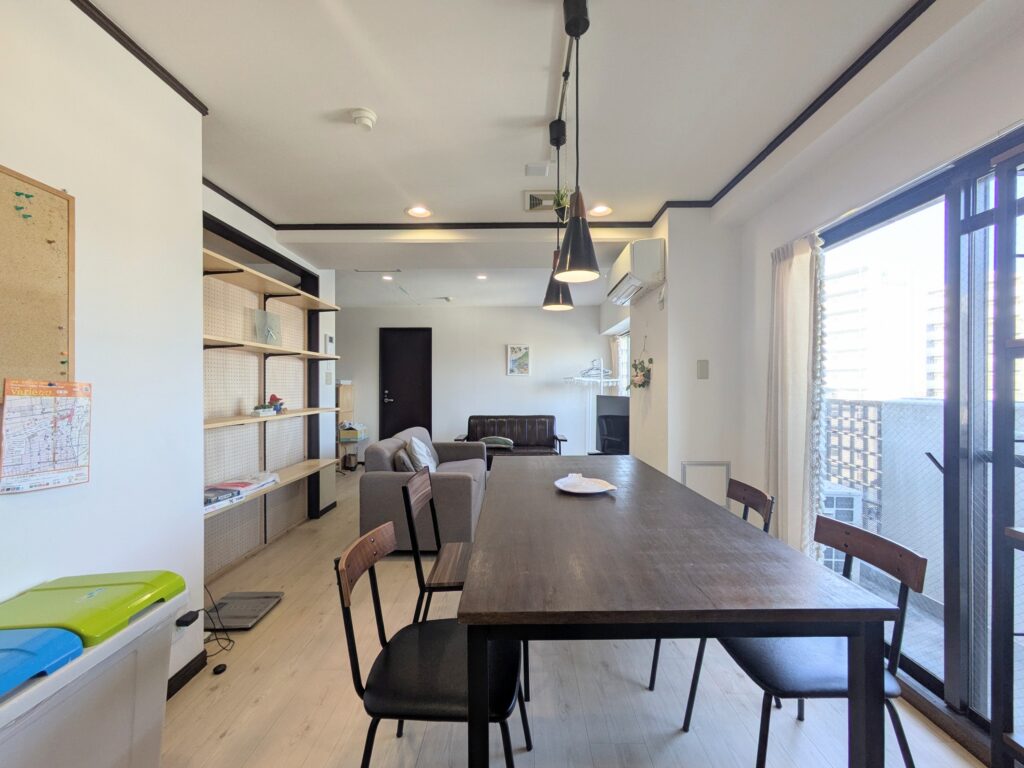 建物の1階にはコンビニエンスストアがあり、近隣にはスーパーや飲食店、カフェ、ショッピング施設が充実。日常生活をシンプルで快適にしてくれます。建物の正面には小さな公園と大きな体育館があり、さらに淀川河川敷公園も徒歩圏内。ジョギングやサイクリング、屋外でのリフレッシュにも最適な環境です。シェアハウスは7階・8階に位置しており、周囲の山々まで見渡せる開放的な眺望が魅力。自然光がたっぷり入る、明るく心地よい住空間が広がっています。