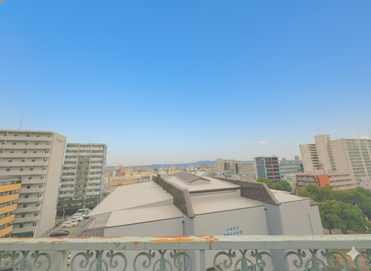 Right in front of the building are a small park and a large gymnasium, while the expansive Yodogawa Riverside Park is within walking distance—ideal for jogging, cycling, or outdoor relaxation.