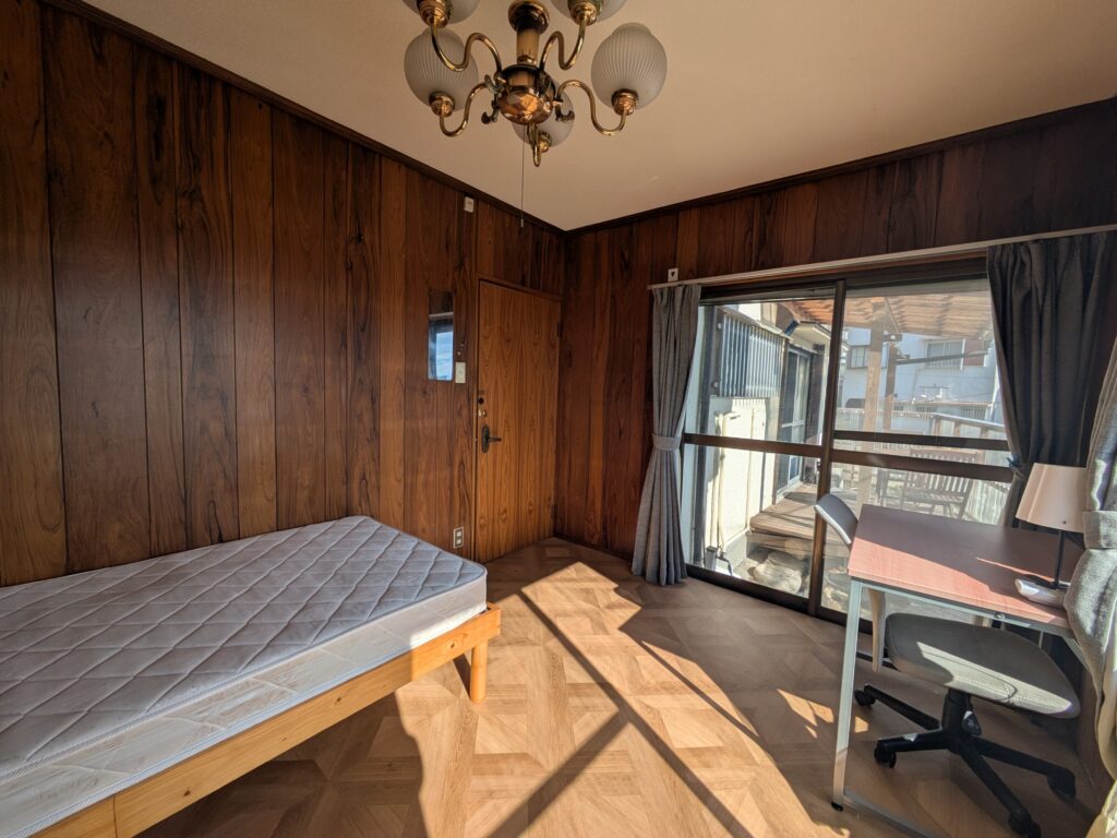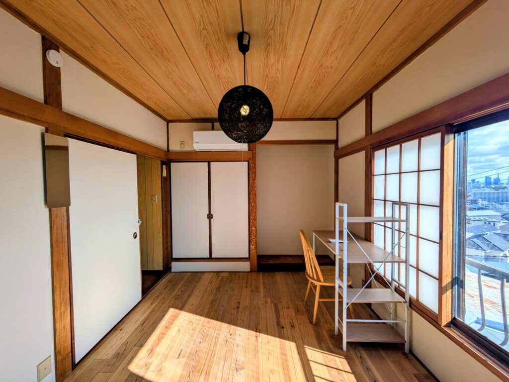 In addition to the dining kitchen, we have prepared a living room where everyone can relax, a Japanese-style second living room with a calm atmosphere, and a wooden deck overlooking Kobe. There is also a refrigerator, microwave, handy vacuum cleaner and washing machine. Each room is equipped with air conditioners, wooden desks, chairs, and hanger racks, so that additional items are minimized. (Futon and mattress are provided by yourself)
