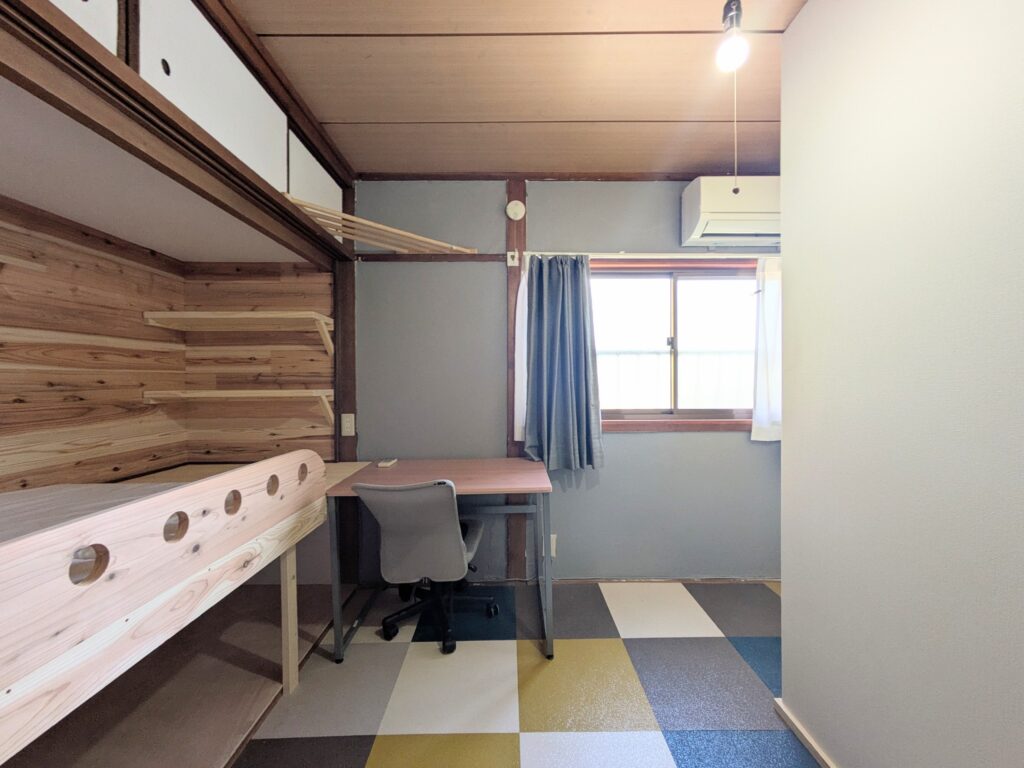 Each private room is equipped with air conditioning, a wooden desk, chair, and hanger rack, allowing residents to settle in with minimal additional items.